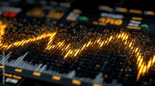 Obraz premium Abstract digital background with glowing financial candlestick charts,...