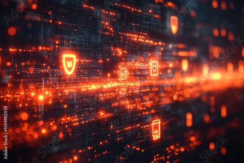 © CahPapat, Fototapeta premium Abstract digital background with glowing icons.