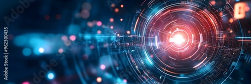 Fototapeta premium Abstract digital background with glowing lights and circles.