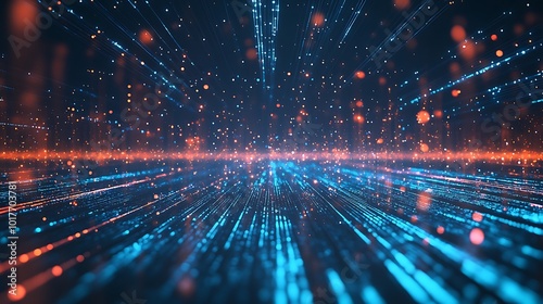 © Raffaza, Obraz premium Abstract digital background with glowing lines and particles.