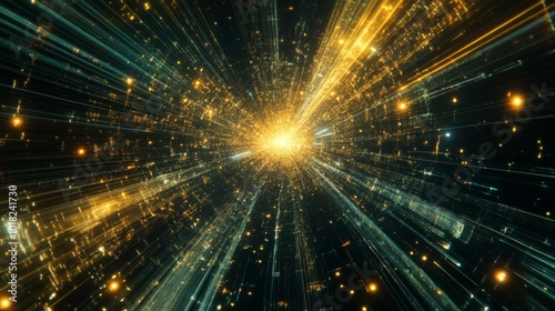 © Pure Imagination, Naklejka premium Abstract digital background with glowing lines and particles