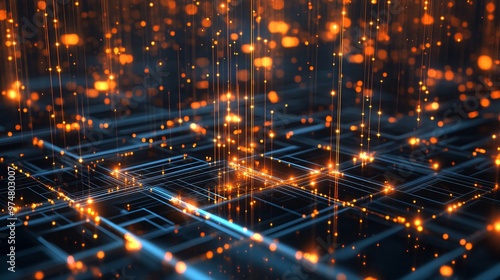 Fototapeta premium Abstract digital background with glowing lines and particles, representing...