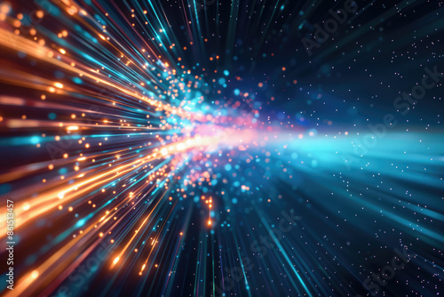 Fototapeta premium Abstract digital background with glowing orange and blue light streaks.