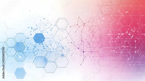 Fototapeta premium Abstract Digital Background with Interconnected Hexagon Patterns in Blue and Red Tones