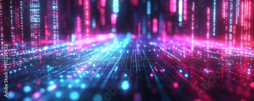 Obraz premium Abstract digital background with pink and blue glowing lines.