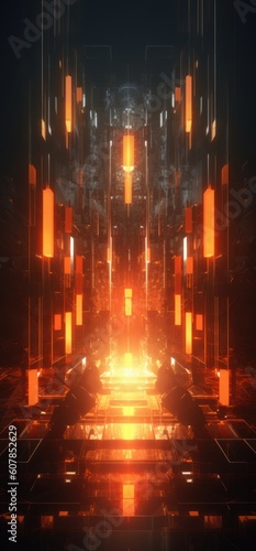 Fototapeta premium abstract digital background with space in an amber world, ai tools generated image