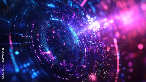 Fototapeta premium Abstract digital background with vibrant pink and blue circular patterns and lights.
