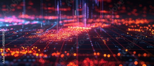 Naklejka premium Abstract digital background with vibrant red and blue lights.