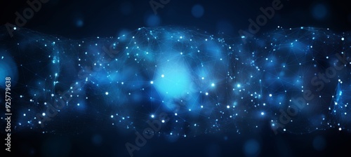 © Henry, Obraz premium Abstract digital blue background with a glowing global network and internet connections on a dark blue backdrop, a technology concept.