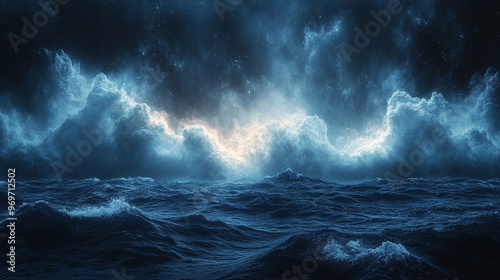 © Your Hand Please, Fototapeta premium Abstract digital blue wallpaper showcasing technological innovation. The image features futuristic design elements with a blend of light and dark tones, symbolizing advanced tech and creativity