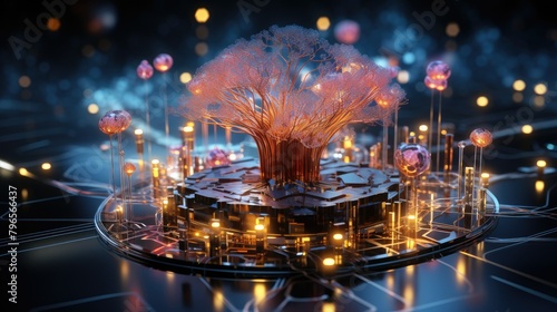 Obraz premium Abstract digital brain surrounded by data streams symbolizing online...