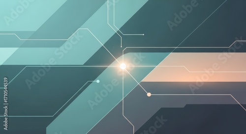 © Pixolia Stock, Naklejka premium Abstract Digital Circuit Board with Glowing Center and Geometric Shapes