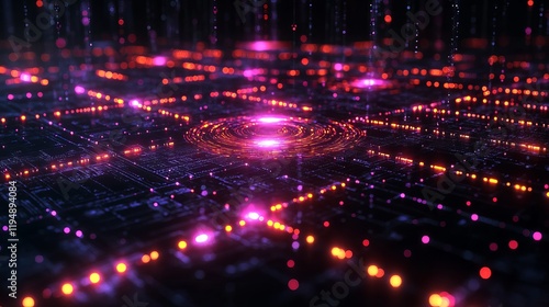 Fototapeta premium Abstract Digital Circuit Board with Glowing Lines red data pink dark