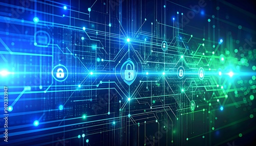 © Ruang, Obraz premium Abstract digital circuit board with security icons