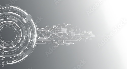 Obraz premium Abstract digital circuit design with circular and linear technological...