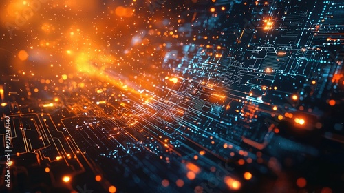 © Thanawat_Suesoypan, Obraz premium Abstract digital circuit design with glowing elements