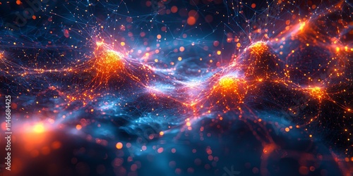 Obraz premium Abstract Digital Circuit in Glowing, Interconnected Neon Lines, Featuring...