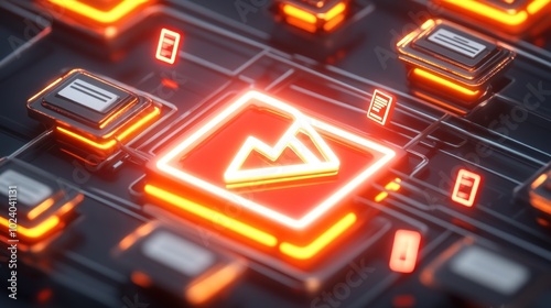 Obraz premium Abstract digital circuitry with glowing elements symbolizing technology and...