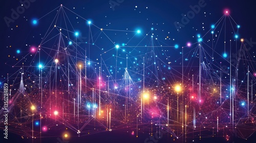 Fototapeta premium Abstract digital city network glow