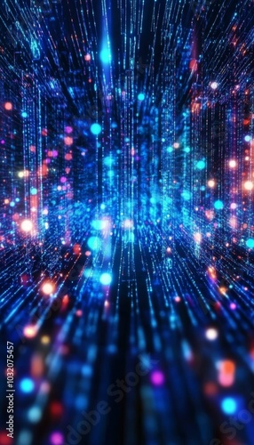 © Ilja, Obraz premium Abstract Digital Cityscape. Futuristic Data Visualization, Big Data Stream, Cyberspace.
