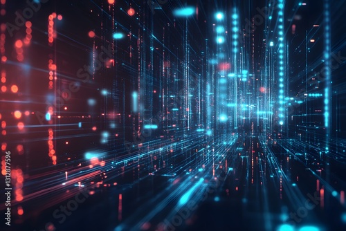 © Nanang, Obraz premium Abstract Digital Cityscape, glowing lines and data