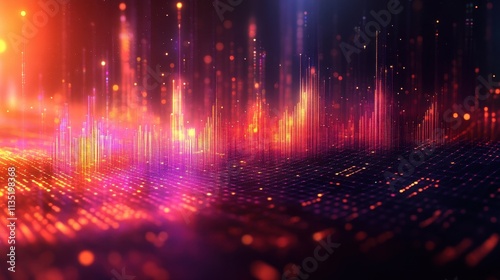Fototapeta premium Abstract Digital Cityscape Glowing Red and Orange Neon Lights, Futuristic...