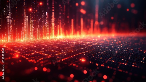 Naklejka premium Abstract Digital Cityscape: Glowing Red Metropolis at Night