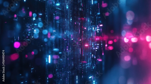 Obraz premium Abstract Digital Cityscape: Neon Lights and Data Streams