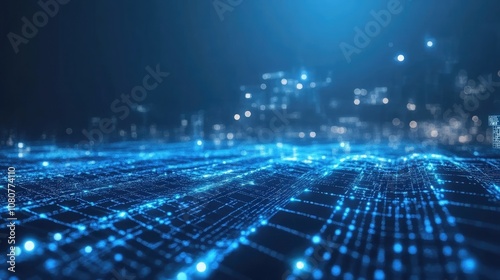 Obraz premium Abstract digital cityscape with glowing blue lines and dots, representing the...