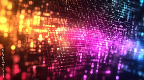 © Hammam, Obraz premium Abstract digital code background with glowing lights.