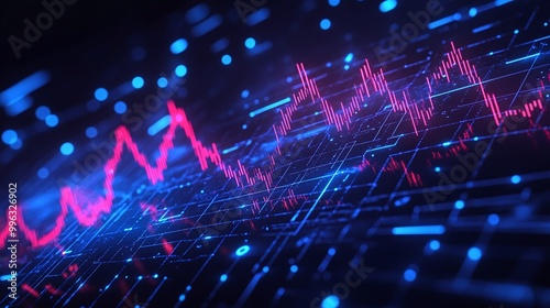 Fototapeta premium Abstract digital data analysis with vibrant blue and pink waveforms,...