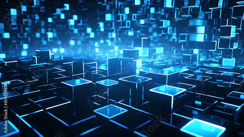 © Kubby_ph, Obraz premium Abstract Digital Data Background.Blue glowing cubes. Binary code.