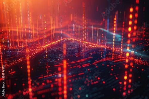 Fototapeta premium Abstract digital data flow with glowing red lines and dots, creating a...
