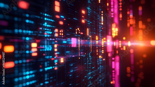 Fototapeta premium Abstract Digital Data Flow with Neon Lights and Glowing Grid Pattern