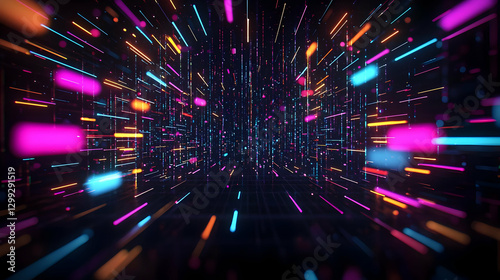 Fototapeta premium Abstract Digital Data Flowing Through Network with Glowing Neon Lines and...