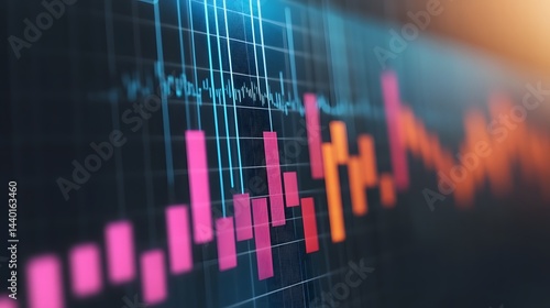 © pkproject, Fototapeta premium Abstract Digital Data Growth Chart Overlaying Modern Business Building