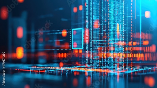 © donchanu, Naklejka premium Abstract Digital Data Stream Binary Code Technology Background Futuristic Network Cyber Security