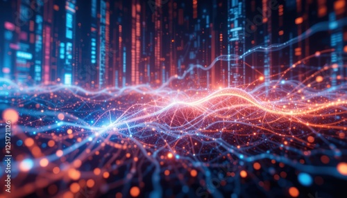 © afif, Fototapeta premium Abstract digital data stream, city lights, network connection, background