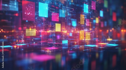 Obraz premium Abstract digital data stream; colorful blocks and glowing lines; futuristic...