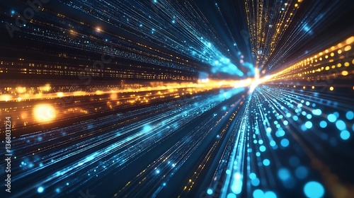Naklejka premium Abstract digital data stream, glowing lines and particles.