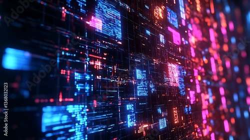 Naklejka premium Abstract digital data stream, glowing neon code.
