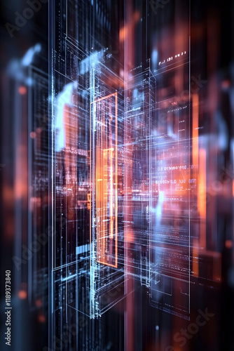 Obraz premium Abstract digital data stream, glowing pathways, futuristic technology,...