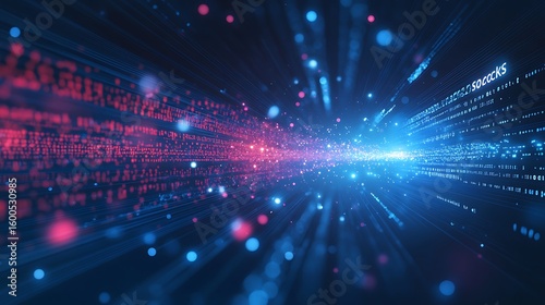 Fototapeta premium Abstract digital data stream with glowing blue and red lights creating a...