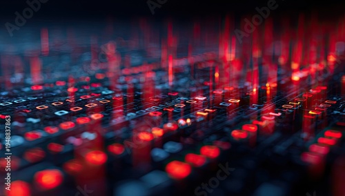 © faki, Obraz premium Abstract digital data stream with glowing red and blue elements