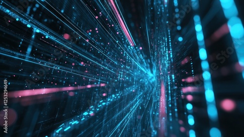 Obraz premium Abstract Digital Data Stream with Light Rays and Particles in Dark Space