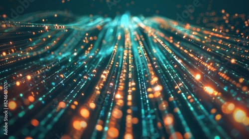 Obraz premium Abstract digital data stream with vibrant bokeh lights, representing...