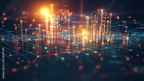 © slamet, Obraz premium Abstract Digital Data Visualization: A Network of Illuminated Lines and Points
