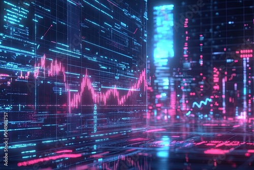 © Hungarian, Naklejka premium Abstract Digital Data Visualization with Pink and Blue Glowing Lines