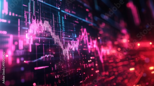 © Penatic Studio, Obraz premium Abstract Digital Data Visualization with Pink and Blue Lights