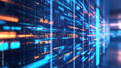 © putri syakilla, Fototapeta premium Abstract digital data visualization with vibrant lines and glowing elements.